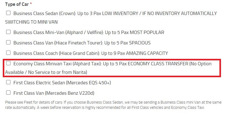 Just choose Economy Class Minivan Taxi, and that’s all.